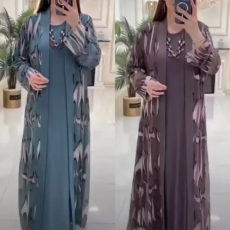 Abaya cardigan 2 pièces élégante pour femme musulmane
