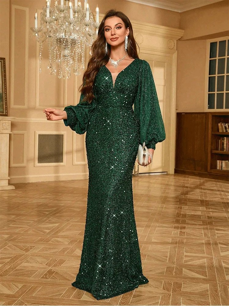 Cette robe brillante pour femme est idéale pour toutes les cérémonies importantes.