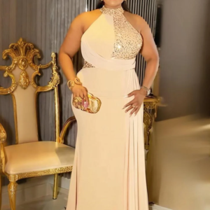 Cette robe de soirée à paillettes abricot a été conçue pour sublimer la silhouette féminine lors des événements les plus prestigieux.