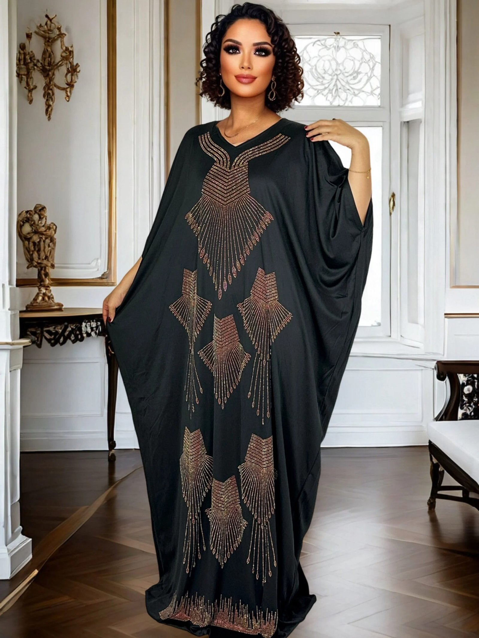 Cette robe maxi décontractée en strass est la parfaite alliance entre élégance contemporaine et confort absolu. Pensée pour les femmes qui recherchent une tenue à la fois sophistiquée et agréable à porter, elle se distingue par sa coupe ample et son design fluide. Grâce à ses finitions brillantes en strass, cette robe de soirée attire subtilement la lumière, tout en conservant une allure chic et moderne.