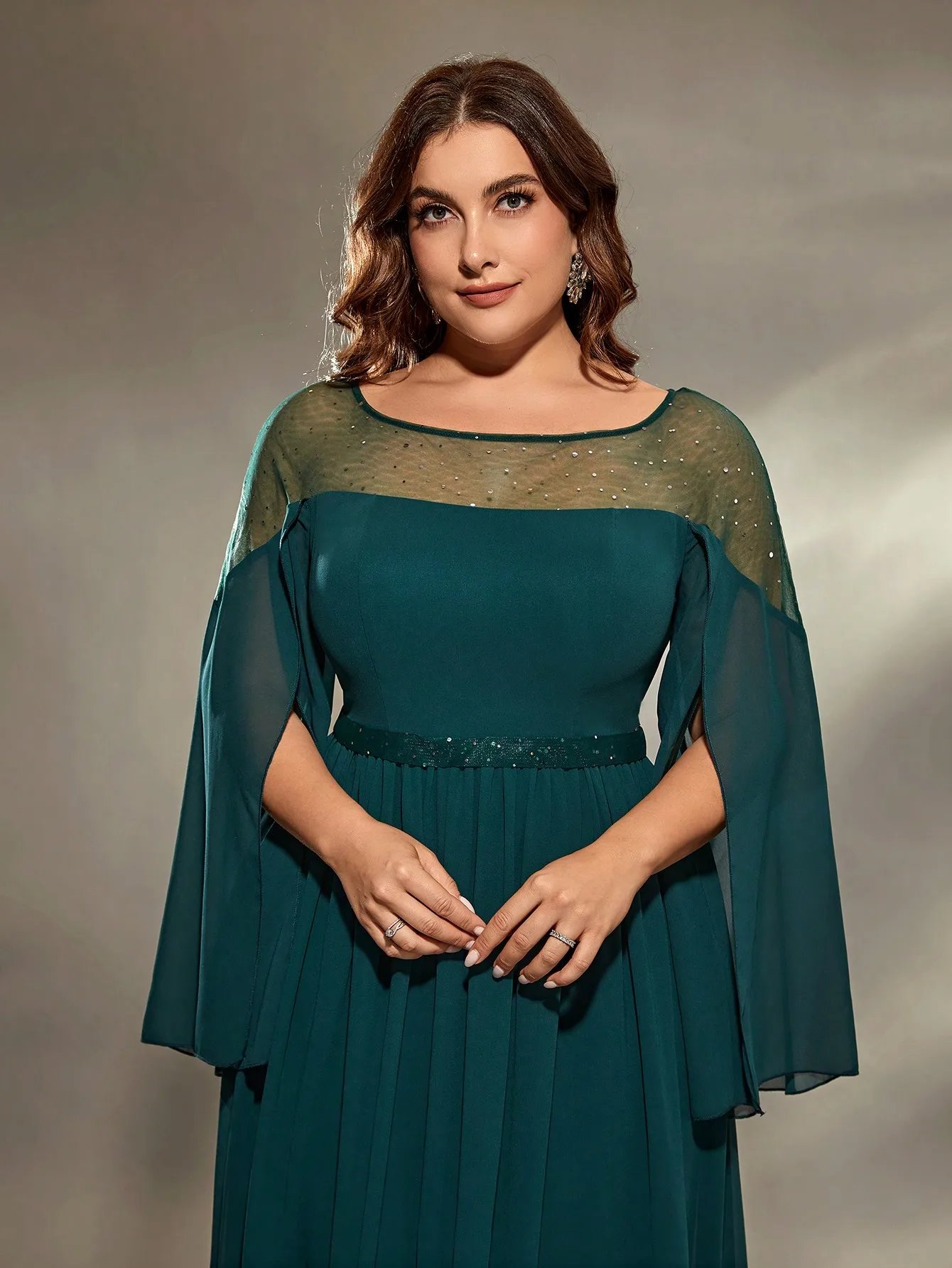 Robe de soirée grande taille élégante en mousseline de soie
