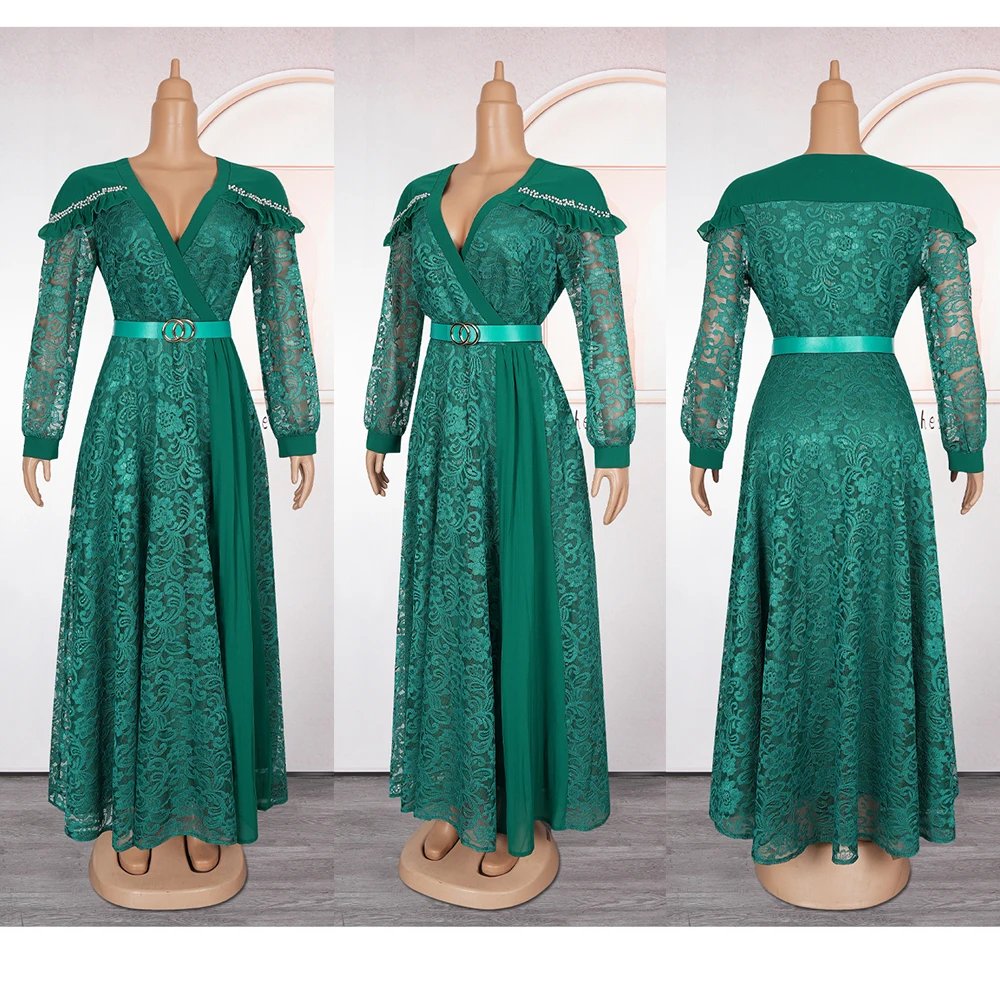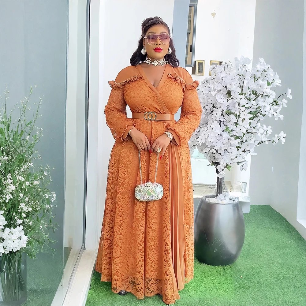 Apportez sophistication et style à vos événements estivaux avec cette robe africaine élégante pour femmes grandes tailles. Conçue pour allier confort, raffinement et tendance, cette robe longue en dentelle musulmane est parfaite pour les mariages, fêtes et occasions spéciales. Sa coupe fluide et longue garantit un tombé impeccable tout en mettant en valeur la silhouette féminine.