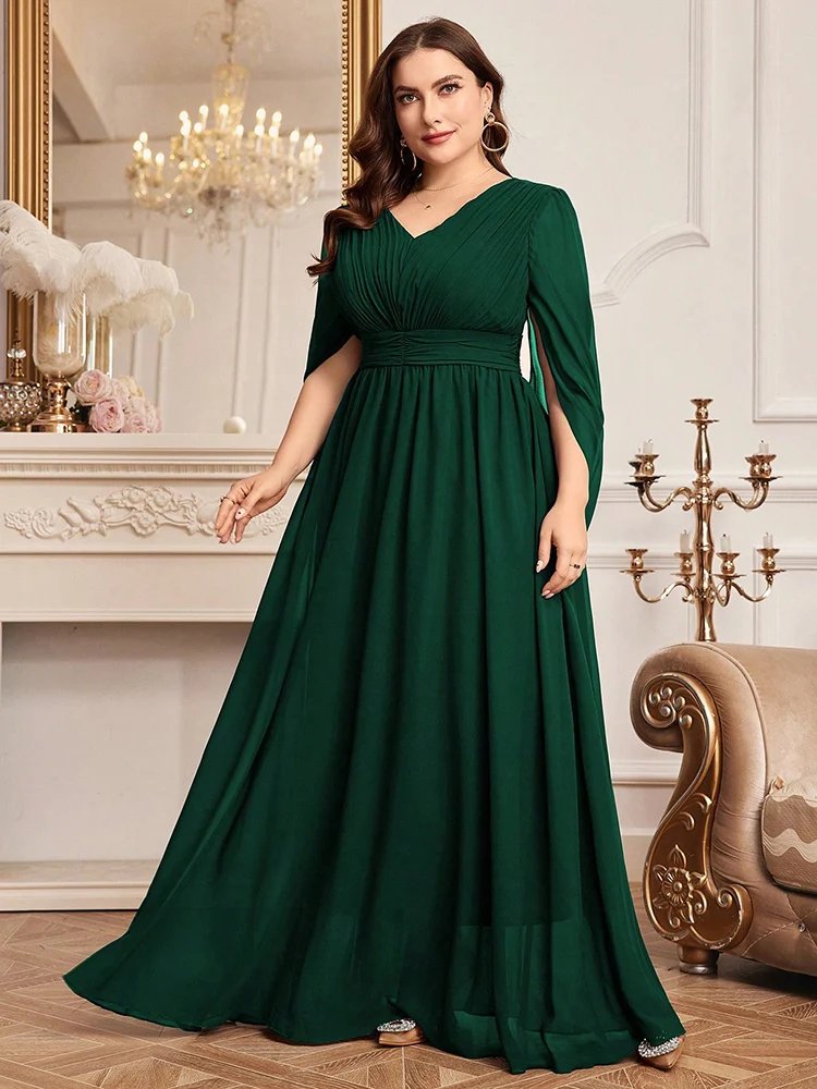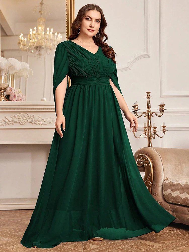 Cette robe grande taille de soirée a été spécialement pensée pour offrir confort et élégance. En effet, sa coupe ample épouse délicatement les formes, sans les contraindre. Grâce à cette conception intelligente, elle convient parfaitement aux femmes souhaitant une tenue élégante tout en profitant d’un confort optimal. De surcroît, le col en V allonge visuellement le buste, apportant une silhouette élancée.